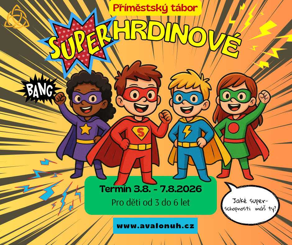 Chcete objevit svoje tajné schopnosti a prožít týden plný napínavých misí? Na našem táboře se každý z vás stane pravým hrdinou! Společně si vyrobíme vlastní masky a pláště, budeme trénovat odvahu, rychlost i chytrost a řešit dobrodružné úkoly, které dokáže splnit jen super tým jako jste vy.
